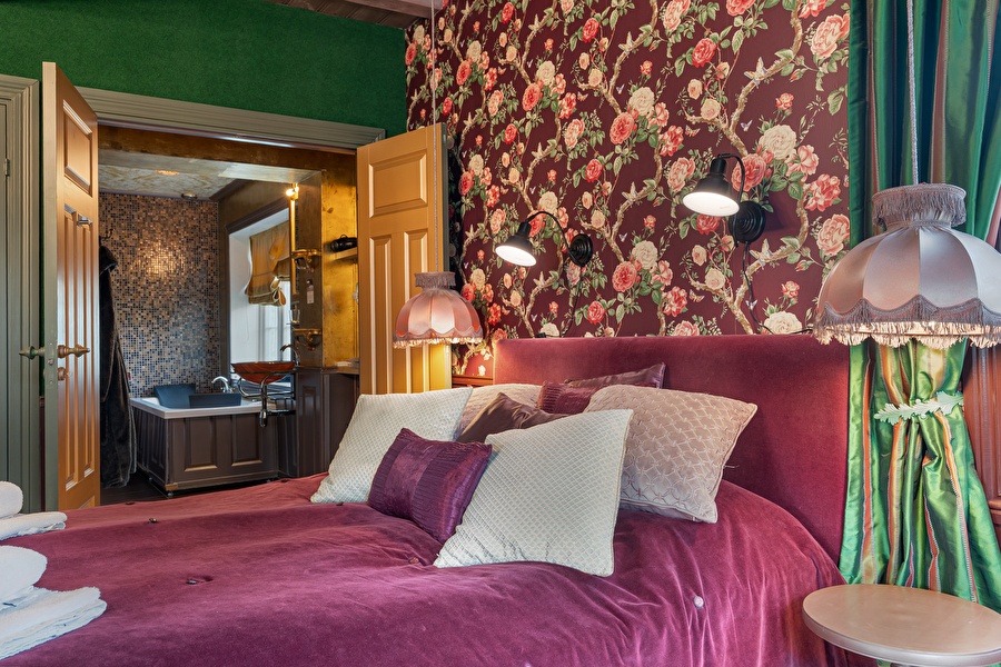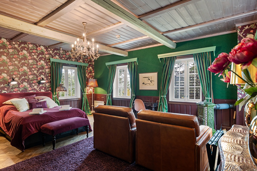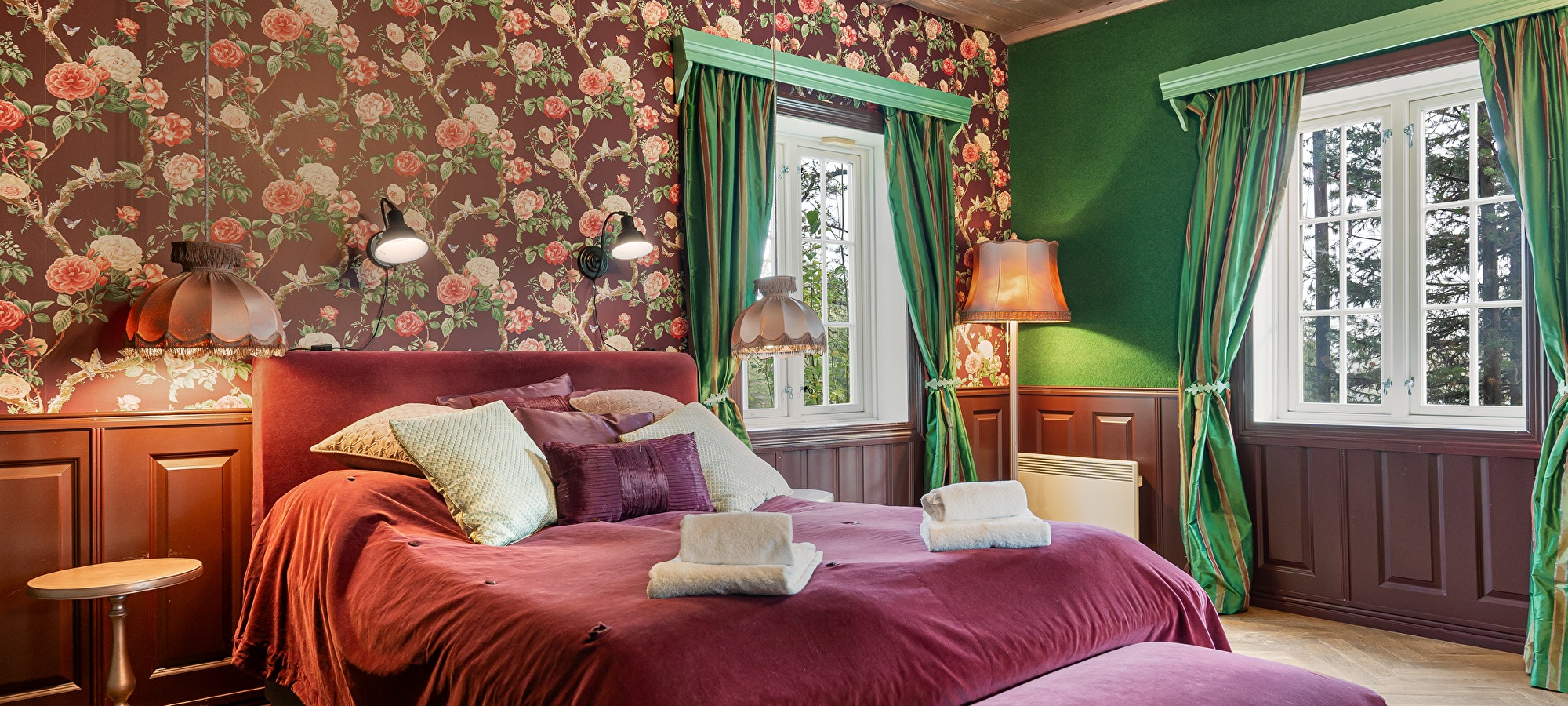 The Bitihorn Suite combines rich velvet, silk, and a dramatic atmosphere for a luxurious stay in Herangtunet's largest suite. Named after Bitihorn (1607m), one of Valdres' most popular and iconic peaks and breathtaking scenaries.
